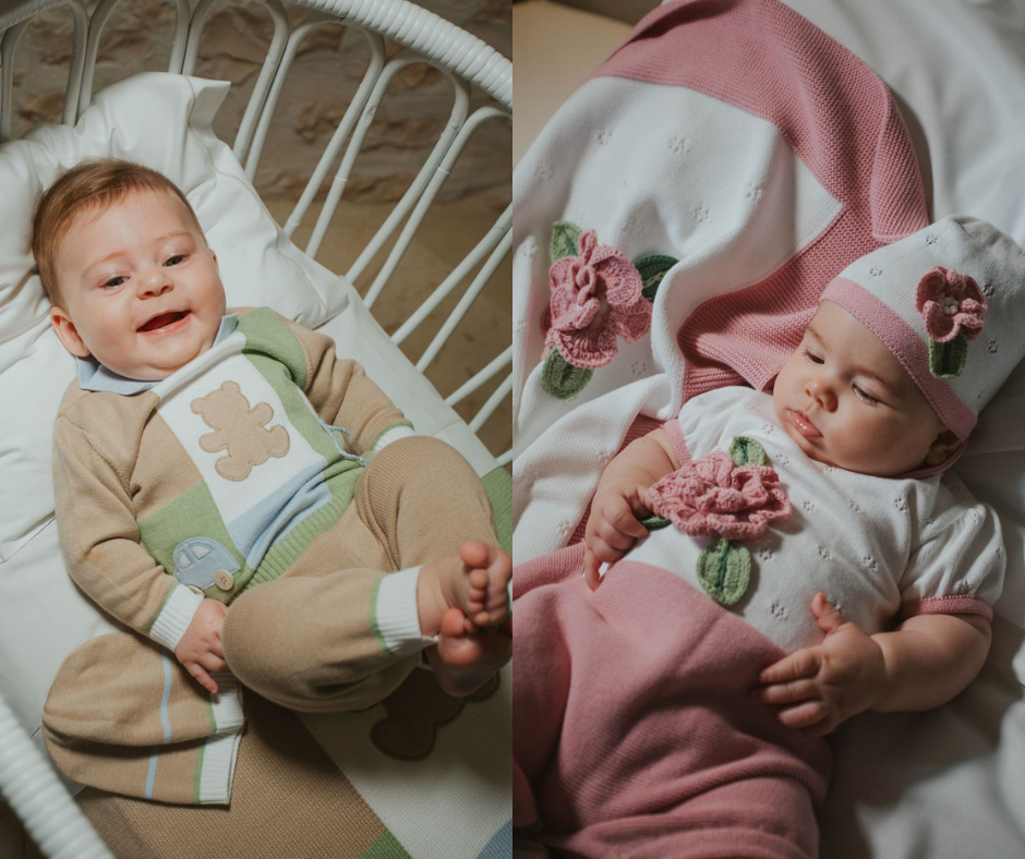 Completo neonato in lana ricamo cuore e fiori Bebè di Almy