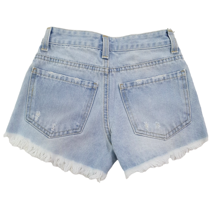 Shorts in cotone denim con strappo