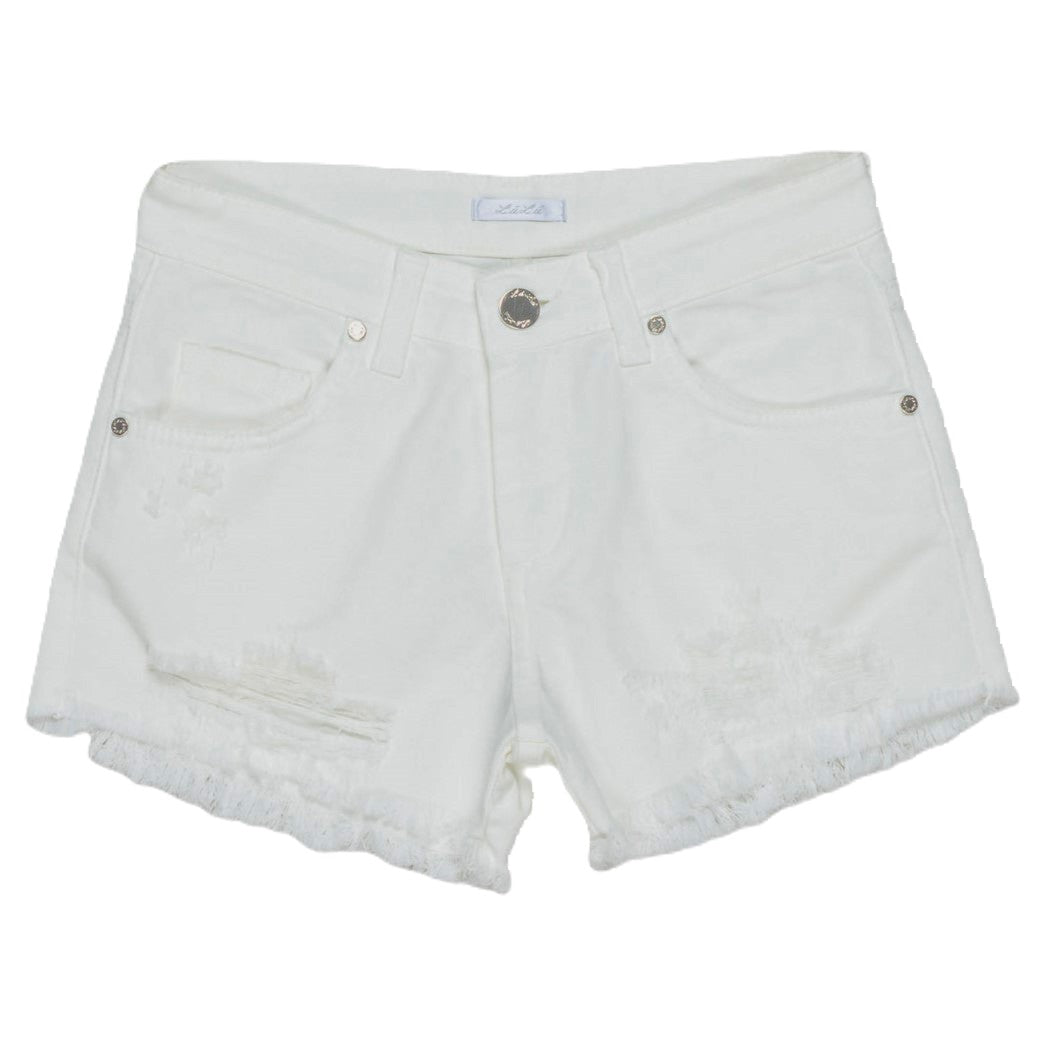 Realizzati in morbido cotone denim elasticizzato, questi shorts sono il perfetto mix di stile e comfort. Il modello cinque tasche offre spazio per tutti i tuoi essenziali, mentre lo strappo sulla gamba aggiunge un tocco di personalità. I bordi con frange completano il look con un tocco di tendenza.