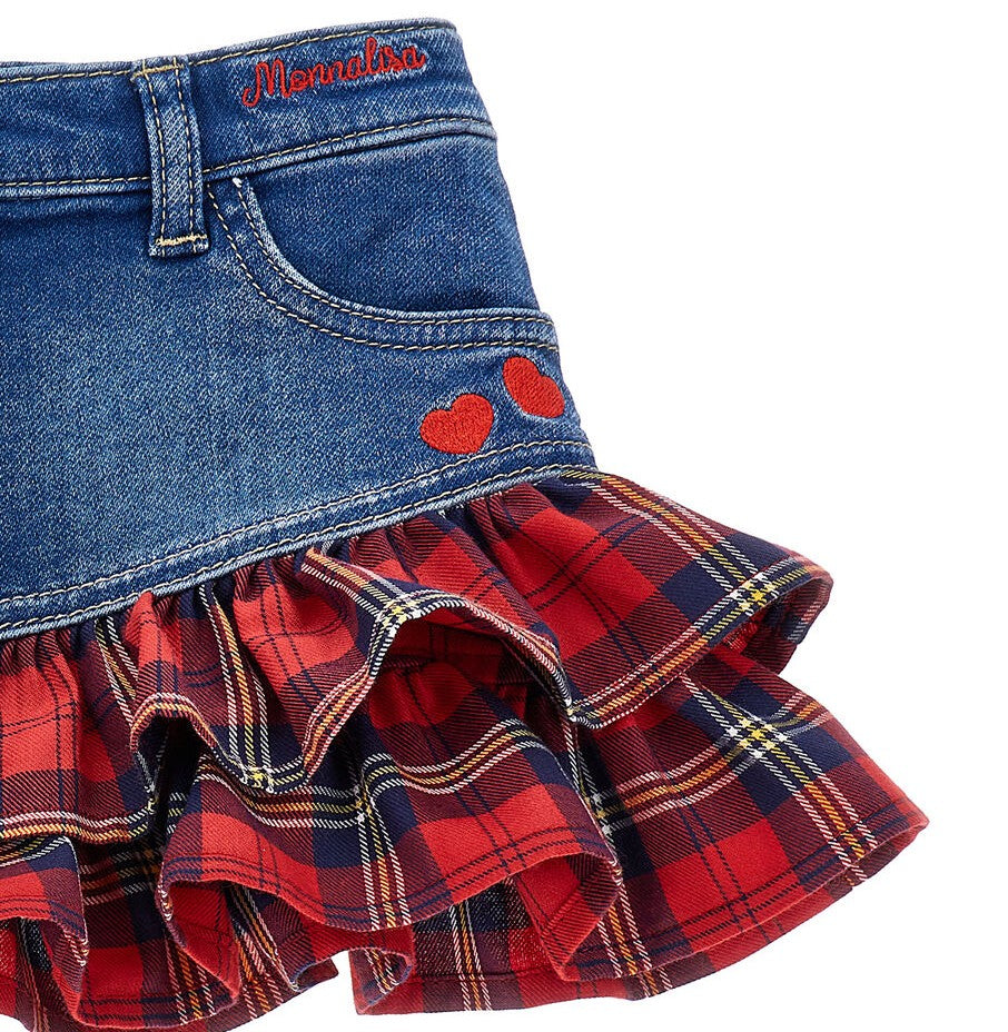 Minigonna Bimba denim con volant e cuori