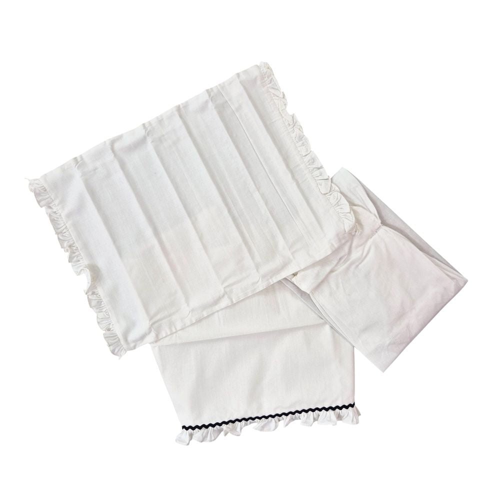 Il coordinato culletta 3 pezzi in cotone unisce eleganza e praticità, garantendo comfort e stile per la culletta del tuo bambino. Comprende un copricuscino con delicate ruches laterali, un coprimaterasso con elastico negli angoli per una perfetta aderenza e un lenzuolino decorato con ruches e un raffinato dettaglio in blu navy. Realizzato in cotone morbido e traspirante, assicura un ambiente accogliente e sicuro, ideale per le prime coccole del tuo piccolo. Scegli un tocco di classe che accompagna ogni nanna con dolcezza e cura.