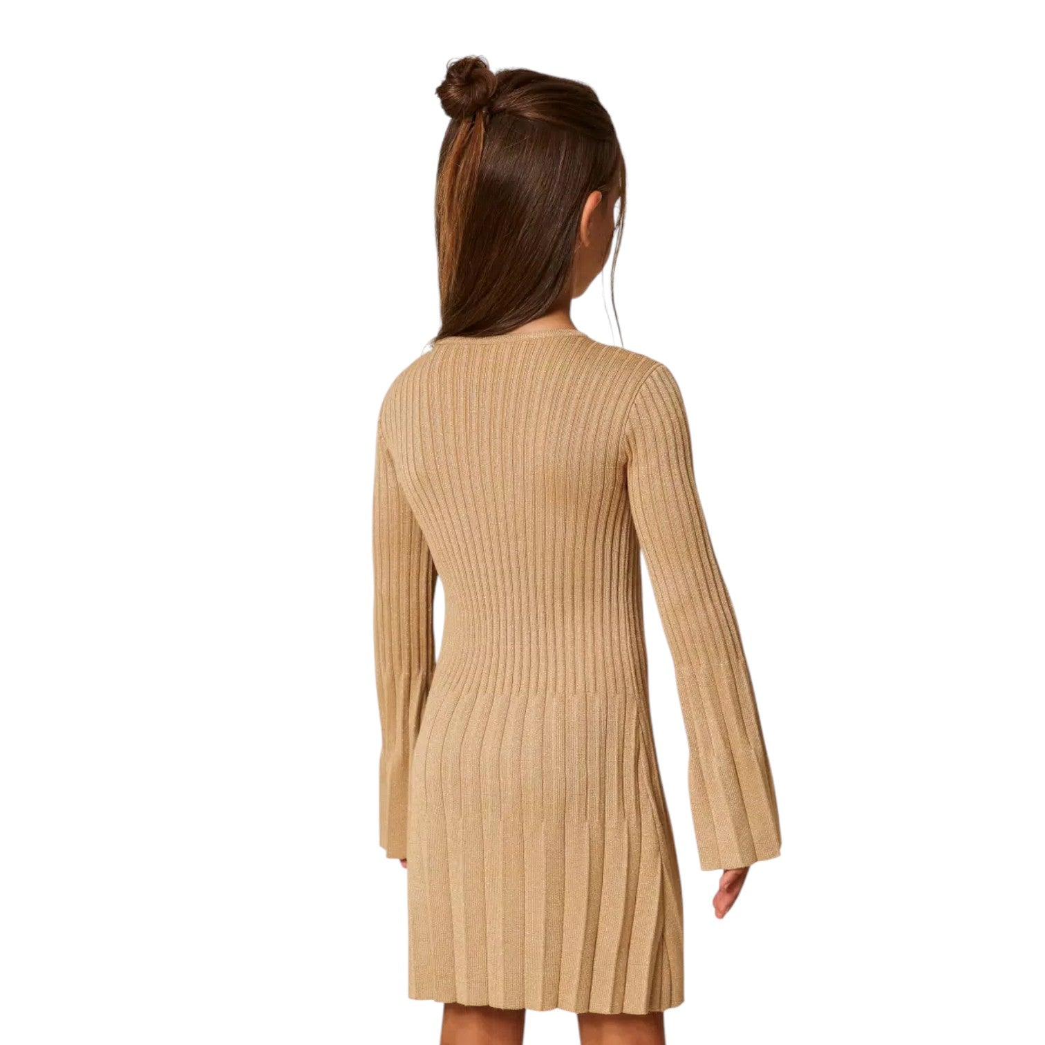 Questo abito corto da bambina, realizzato in maglia plissé di misto viscosa con delicati riflessi lurex, unisce comfort e un tocco di eleganza scintillante. Il collo tondo e le maniche lunghe garantiscono una vestibilità comoda, mentre la linea dritta assicura libertà di movimento. La piccola placchetta logo Oval T in metallo sul davanti aggiunge un dettaglio raffinato, perfetto per occasioni speciali o giornate di festa. Un capo versatile che farà sentire ogni bambina speciale.