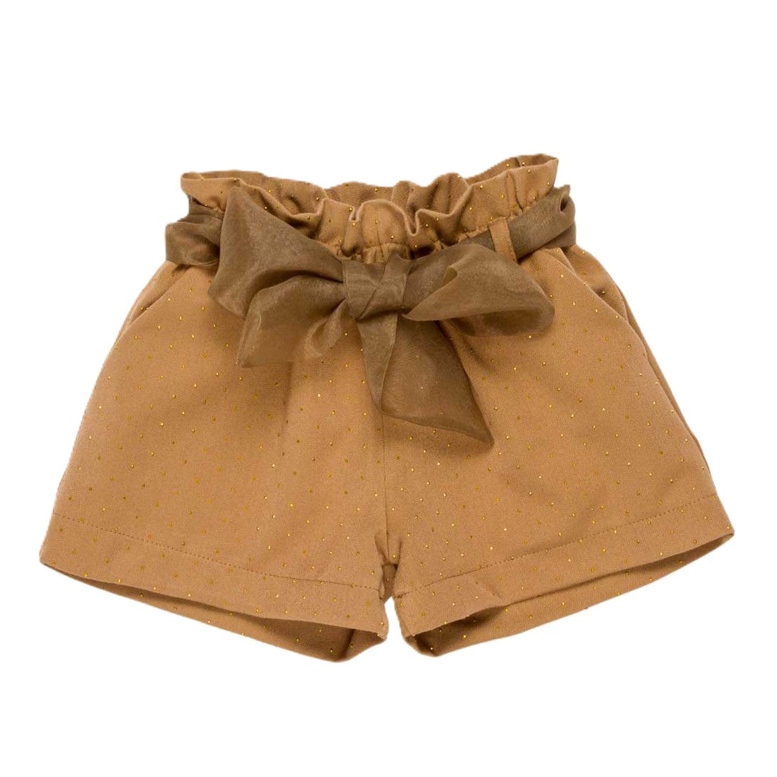 Questi bermuda per bambina uniscono comfort e stile con un elastico alto arricciato in vita che assicura una vestibilità perfetta. La cintura in organza aggiunge un tocco elegante, mentre i piccoli strass tono su tono regalano una delicata brillantezza, ideale per rendere unico ogni outfit. Perfetti per occasioni speciali o per un look raffinato tutti i giorni.