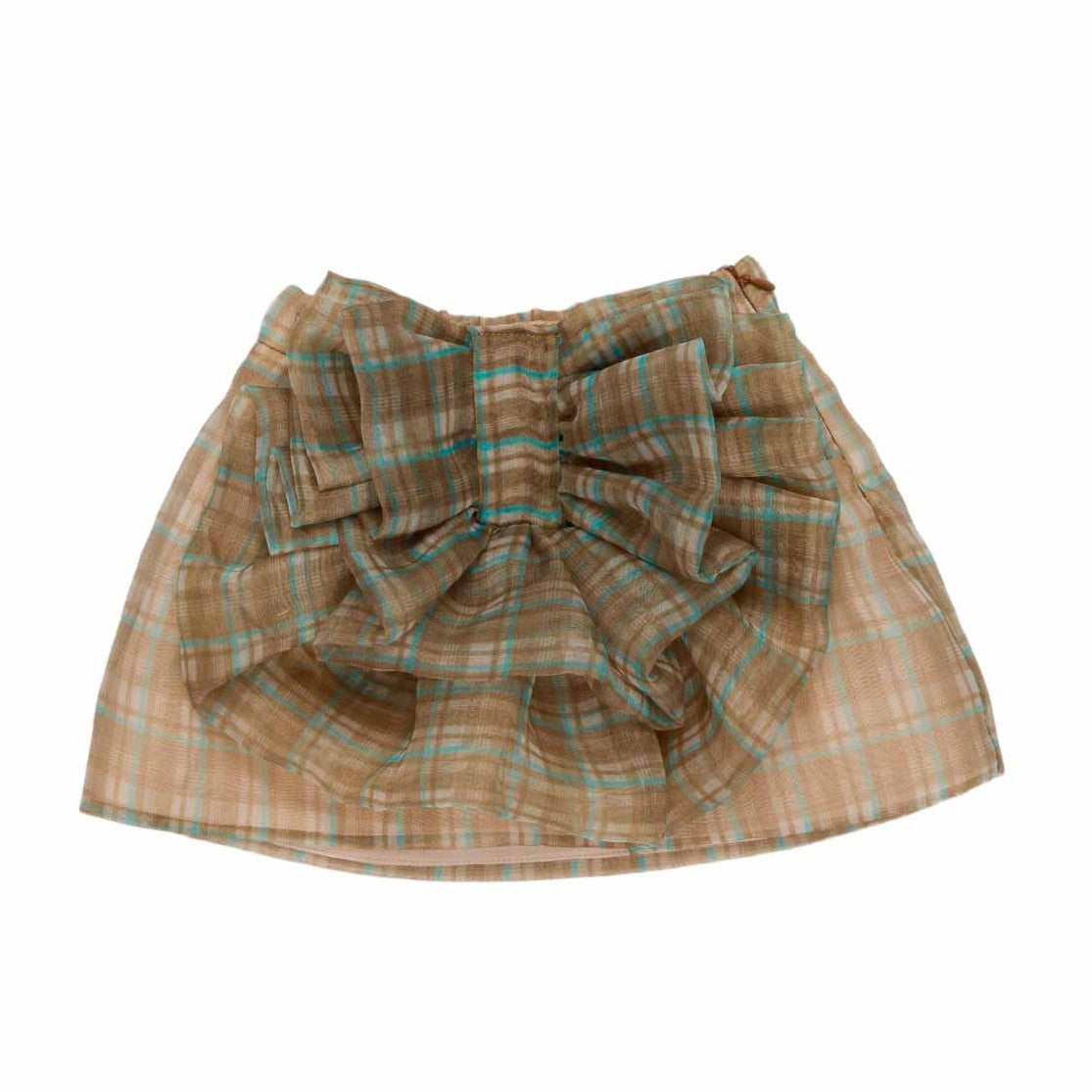 Questa gonna per bambina, realizzata in poliestere e rivestita in organza, presenta un elegante design check ideale per le bambine fashion. L'elastico in vita offre comfort e praticità, mentre la fodera interna garantisce morbidezza. Il fiocco all over in organza sul davanti completa il look con un tocco di raffinatezza, perfetto per uno stile unico e sofisticato.