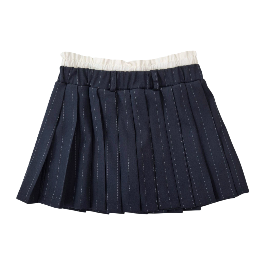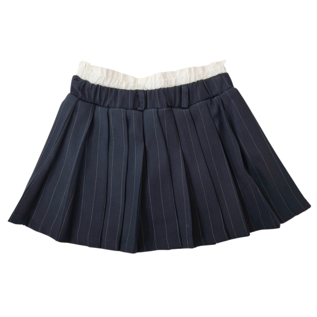 Questa gonna corta da ragazzina unisce stile e comfort con il suo elastico bianco arricciato in vita e il design a righe verticali bianche su fondo blu. Il modello a pieghe piatte dona un aspetto elegante e ordinato, mentre l'interno con pantaloncino mutandina garantisce libertà di movimento e sicurezza. Realizzata in poliestere e viscosa, assicura leggerezza e resistenza per un uso quotidiano senza rinunciare al fascino. Perfetta per accompagnare ogni occasione con freschezza e praticità.