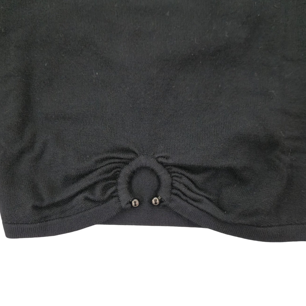 Questa t-shirt a manica lunga nera, realizzata in morbida viscosa e nylon, unisce comfort e stile. Il girocollo valorizza ogni look, mentre l'anello centrale aggiunge un tocco di originalità che distingue il capo. Perfetta per chi cerca un capo versatile e raffinato da indossare in ogni occasione.