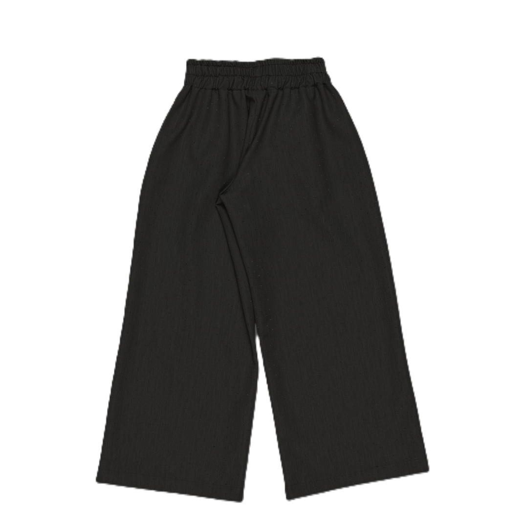 I pantaloni Girl lunghi sono un capo sofisticato, caratterizzati da un elegante elastico in vita arricciato che assicura comfort e vestibilità perfetta. Il design presenta mini strass neri tono su tono, che aggiungono un tocco luminoso e raffinato senza esagerare. Realizzati in poliestere e viscosa, questi pantaloni sono ideali per eventi speciali o serate in discoteca, per chi desidera distinguersi con stile e classe.