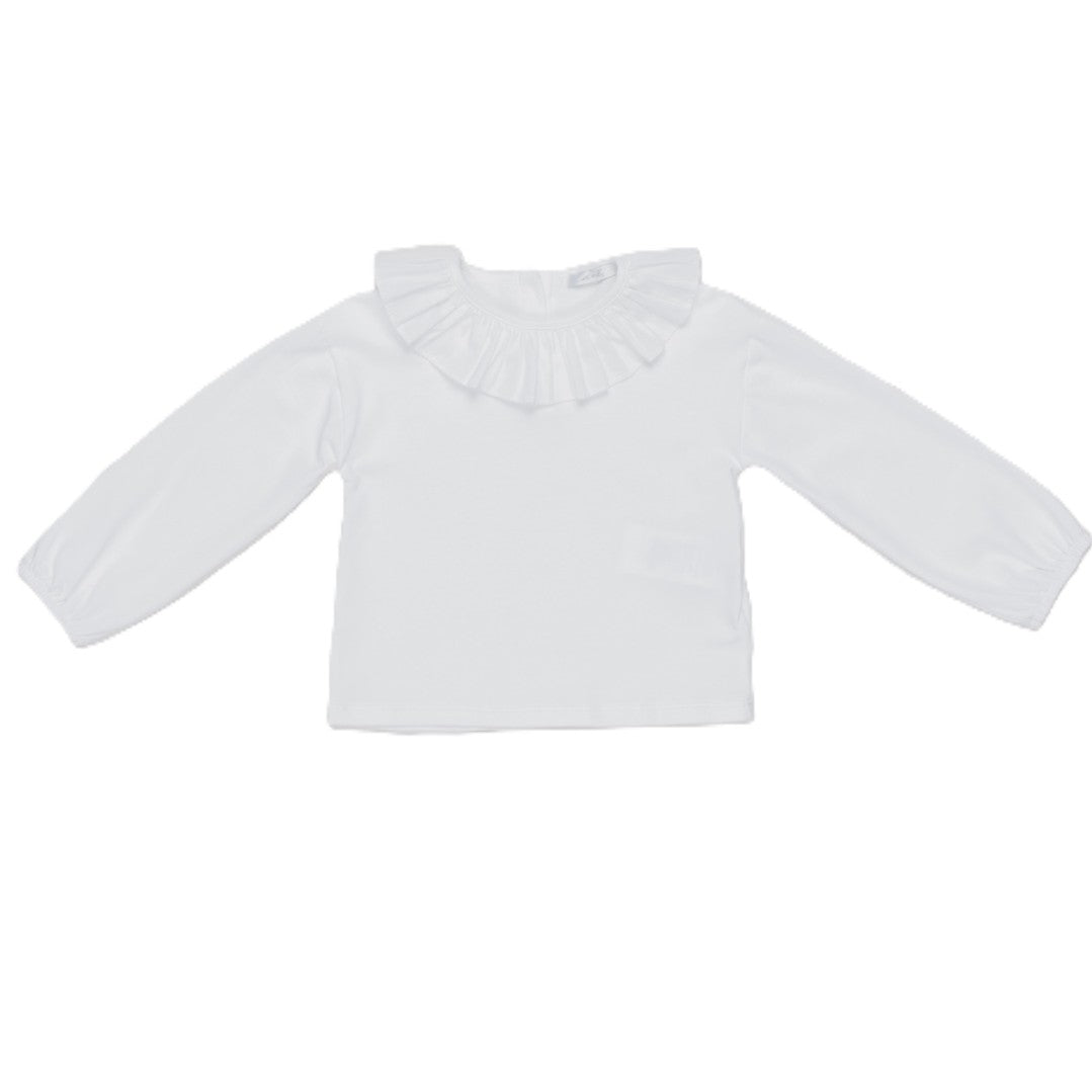 Questa t-shirt per bambina in cotone jersey combina comfort e stile con il suo modello regular fit. Il collo tondo plissè e i polsini con elastico arricciato mettono in risalto dettagli raffinati, perfetti da indossare da soli o sotto un cardigan per un look versatile e curato. Un capo essenziale che valorizza ogni occasione con semplicità ed eleganza.