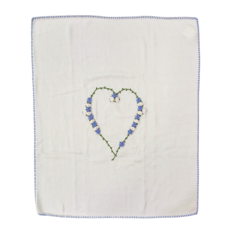 Questa copertina in pura lana merino extrafine avvolge il neonato con morbidezza e calore naturali. Il delicato ricamo a mano di cuore all over, arricchito da raffinati fiori a punto vapore e un elegante profilo a coda di gambero, la rende unica e preziosa. Ideale per la prima uscita dalla clinica, unisce comfort e stile in un gesto di cura indimenticabile. Misure 80x90cm