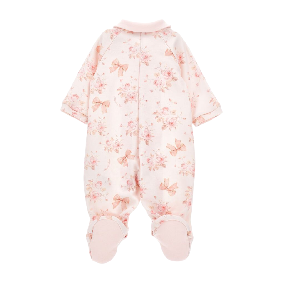 Questa tutina in cotone organico interlock combina morbidezza e stile con un delicato motivo floreale di fiocchi e rose. L’apertura frontale con bottoni automatici facilita il cambio, mentre il colletto elegante aggiunge un tocco raffinato. Perfetta per regalare qualità e comfort o per una giornata casual all’insegna della dolcezza.