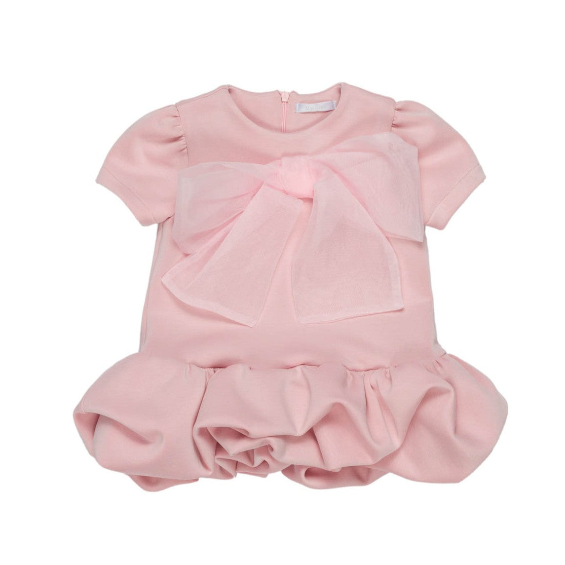 Questo abito in neoprene combina eleganza e comfort con il suo design a palloncino e maniche a sbuffo. Il fiocco in organza che decora tutto il vestito, insieme alla delicata balza con rouche sul fondo, rende questo capo perfetto per feste e occasioni speciali. Un abito raffinato per bimbe che amano distinguersi con stile e originalità.