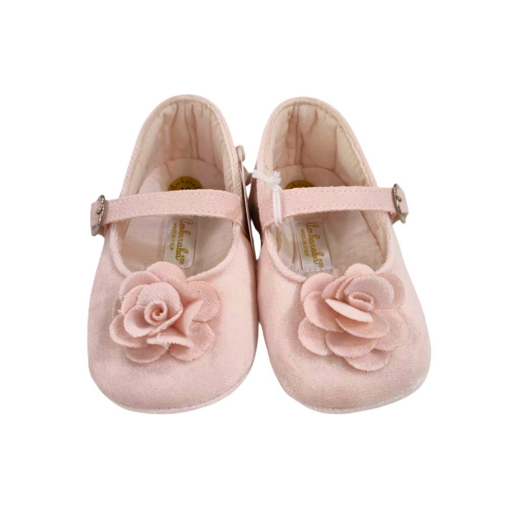 Le ballerine Ambarabà sono realizzate in morbido camoscio, per la massima flessibilità e comfort dei piedini della tua neonata. L'applicazione floreale le rende uniche nel suo genere e le fa emergere per la sua eleganza.