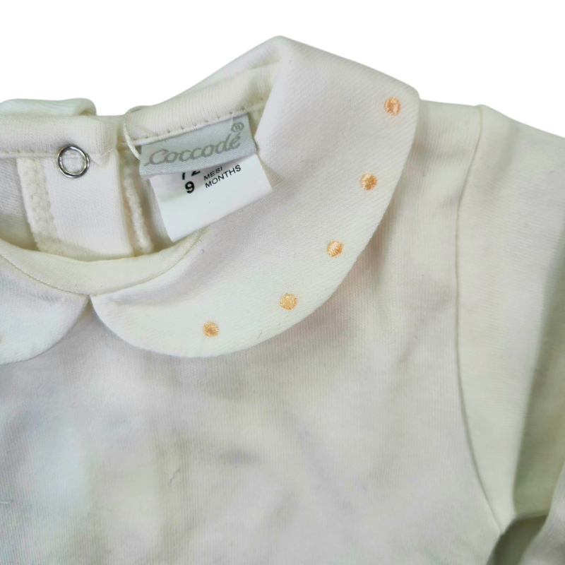 Realizzato in puro cotone caldo, questo body camicia a manica lunga unisce comfort e stile. Il colletto in piquet e il ricamo pois rosa aggiunge un tocco di eleganza, mentre la chiusura sul retro e sul cavallo con ciappe garantisce una vestibilità pratica e sicura. Perfetto per chi cerca un capo raffinato e confortevole da indossare tutto il giorno.