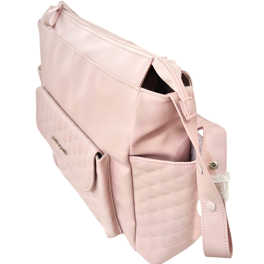Questa borsa neonata in ecopelle unisce stile e funzionalità con il suo design trapuntato e la superficie spalmata ruvida. Dotata di una pratica tasca anteriore con chiusura, due tasche laterali portaoggetti e una tracolla regolabile, offre comodità in ogni occasione. La chiusura con zip e le tasche interne garantiscono sicurezza e ordine, mentre il fasciatoio portatile incluso rende ogni uscita più semplice. Compatta ma capiente (33 cm di altezza, 37 cm di lunghezza, 13 cm di profondità), è l’accessorio ideale per le mamme dinamiche.