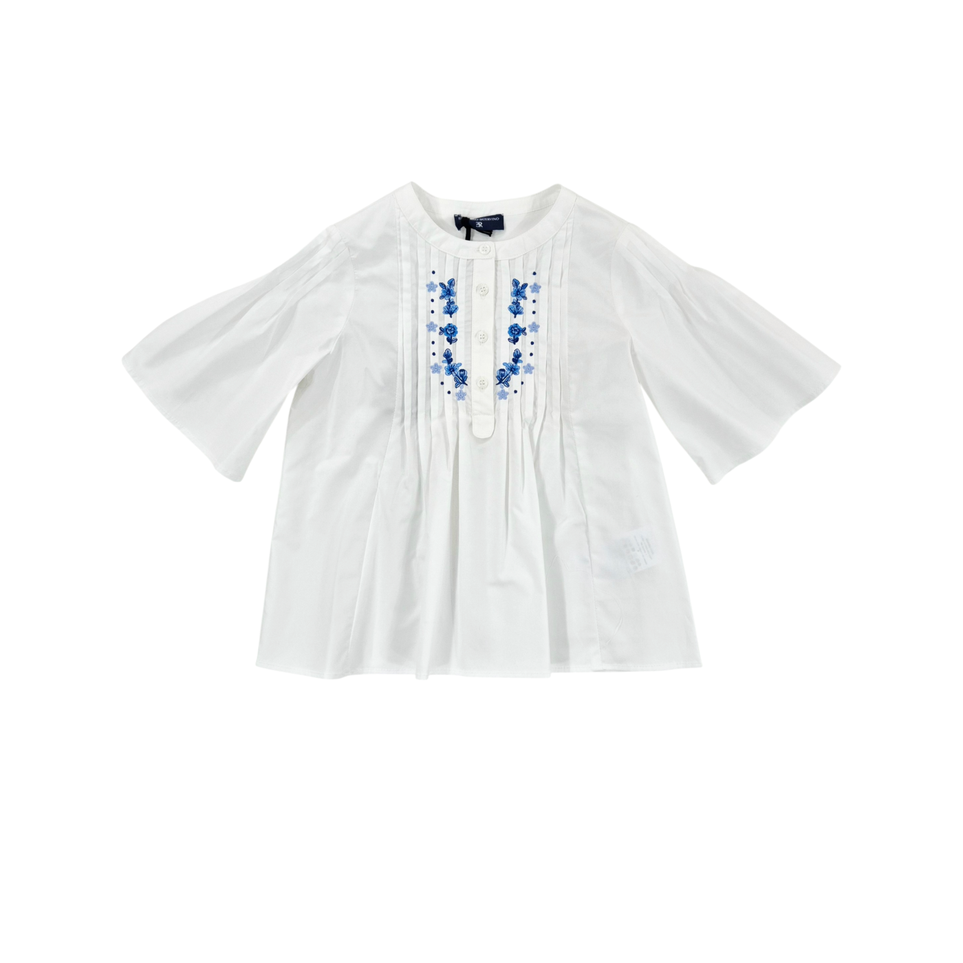 Questa camicia bimba è un vero capolavoro di eleganza! Realizzata in pregiato cotone popeline, sfoggia un modello svasato che valorizza la silhouette con grazia. I bottoni frontali sono impreziositi da raffinate piegoline sul petto, mentre delicati ricami di fiorellini celesti aggiungono un tocco di dolcezza e fantasia. Perfetta per occasioni speciali o per chi ama i dettagli ricercati, questa camicia combina comfort e stile in un'unica creazione sofisticata.