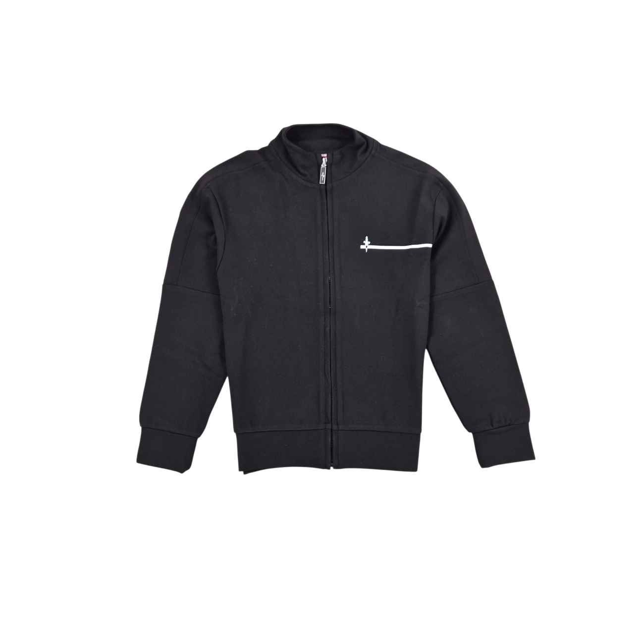 Felpa aperta in tessuto interlock per bambino, perfetta per la mezza stagione. Caratterizzata da chiusura zip centrale, polsini e fascia elastica in vita che garantiscono una vestibilità comoda e sicura. Il logo stampato sul davanti e sul retro aggiunge un tocco di stile contemporaneo. Ideale per le giornate primaverili e le serate estive fresche, questa felpa combina praticità e design trendy, rendendola un capo versatile per il guardaroba del tuo bambino.