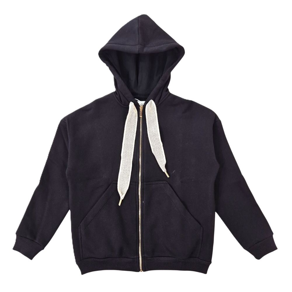 Realizzata in un mix di cotone e poliestere, questa felpa Girl con cappuccio aperta offre comfort e calore grazie alla sua fodera felpata interna. La chiusura zip frontale e il cappuccio con laccetti beige e neri aggiungono praticità e stile. Perfetta per le giornate fredde, è la scelta ideale per le teenager che vogliono unire funzionalità e un look alla moda.