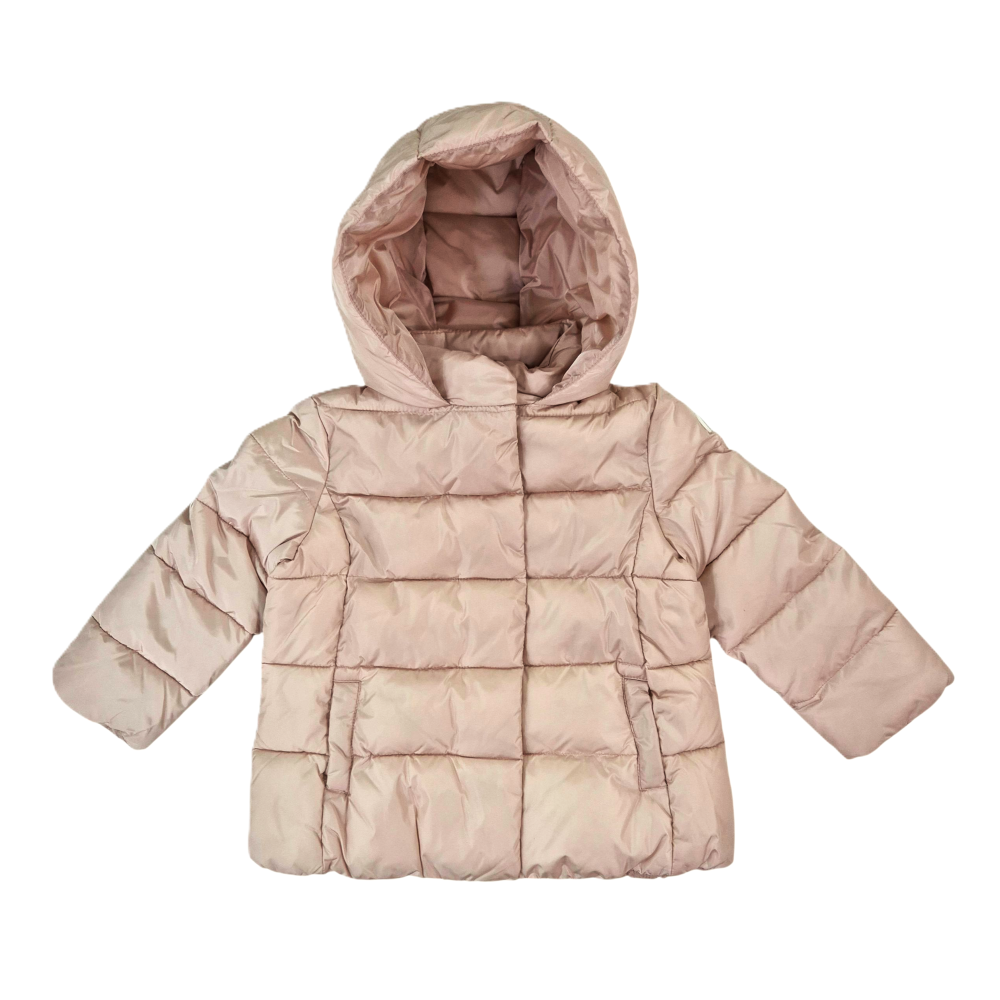 Questo giubbotto piumino per bambina, realizzato in poliestere resistente all'acqua, offre protezione efficace nelle giornate fredde. L’imbottitura certificata Sorano garantisce calore e morbidezza, mentre il cappuccio e la chiusura con zip e bottoni automatici nascosti assicurano comfort e praticità. Perfetto per mantenere le piccole sempre al caldo con stile.