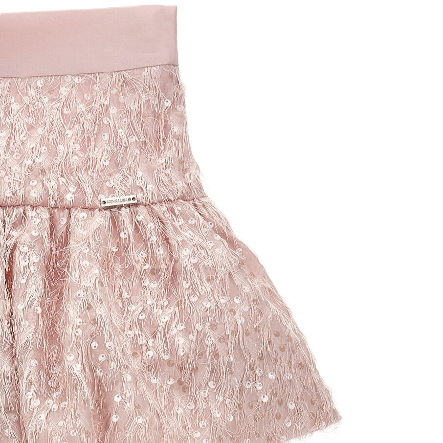 Gonna elegante per bambina che trasforma ogni momento speciale in un'occasione indimenticabile. Il design aderente con balza a ruota crea una silhouette sofisticata, mentre le paillettes e le piume donano brillantezza e movimento. Ideale per compleanni, cerimonie e feste, si abbina perfettamente a camicette leggere e magliette per creare look versatili e raffinati. Un capo che garantisce stile e comfort, permettendo alla tua bambina di sentirsi protagonista con eleganza.