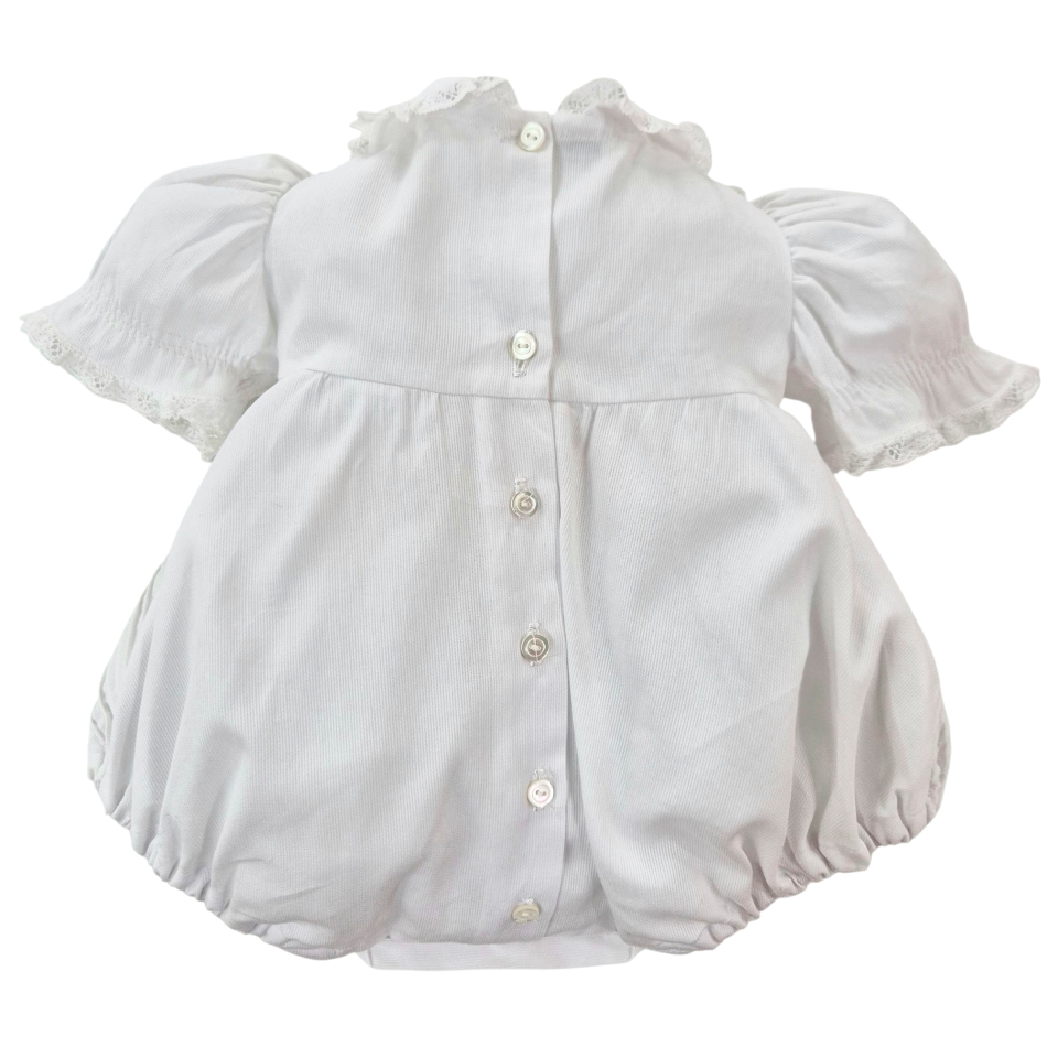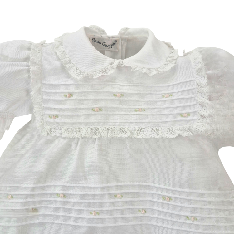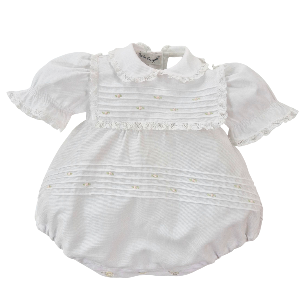 Pagliaccetto neonata in cotone con pizzo e ricamo