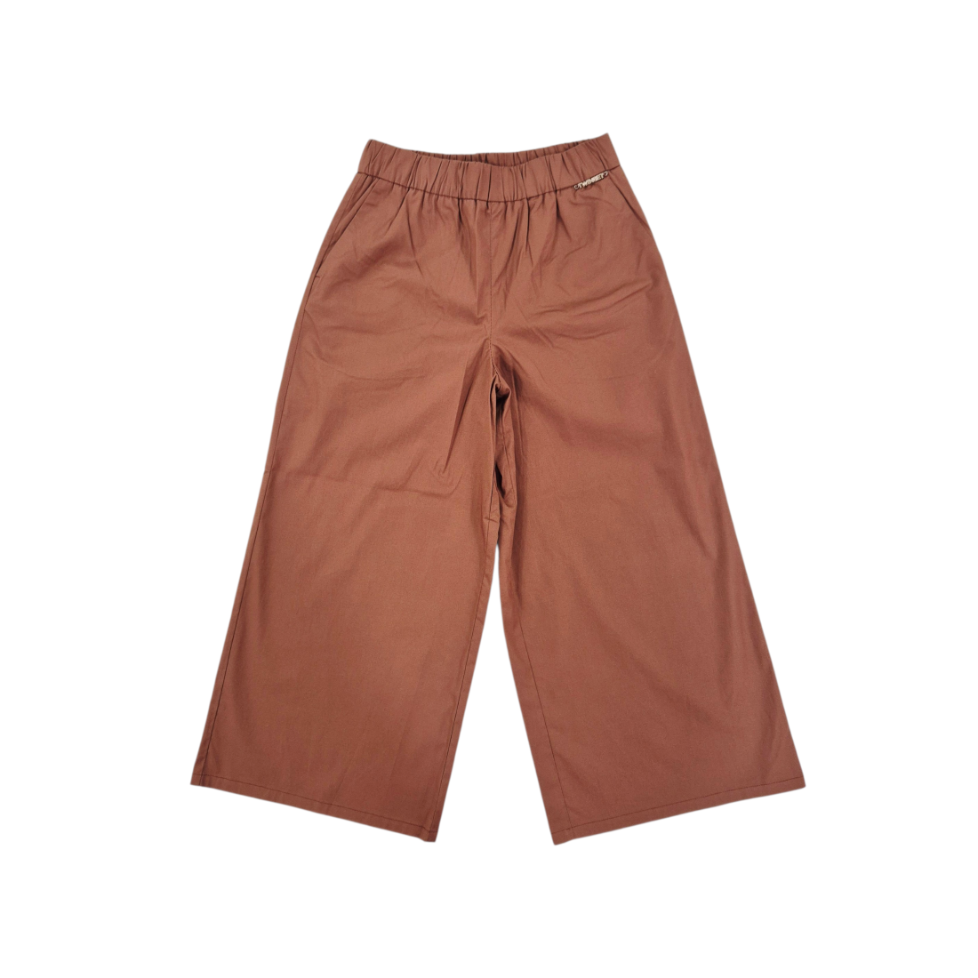 Pantaloni in cotone popeline che catturano lo spirito libero e spensierato. Il modello wide leg regala movimento e comfort, perfetto per chi ama uno stile rilassato ma curato. La vita elasticizzata si adatta perfettamente, mentre la placchetta dorata del logo aggiunge un tocco di eleganza sofisticata. Ideali per creare look casual chic che funzionano dal giorno alla sera.