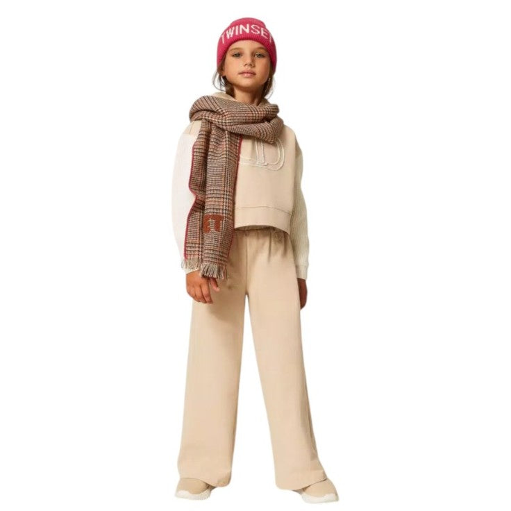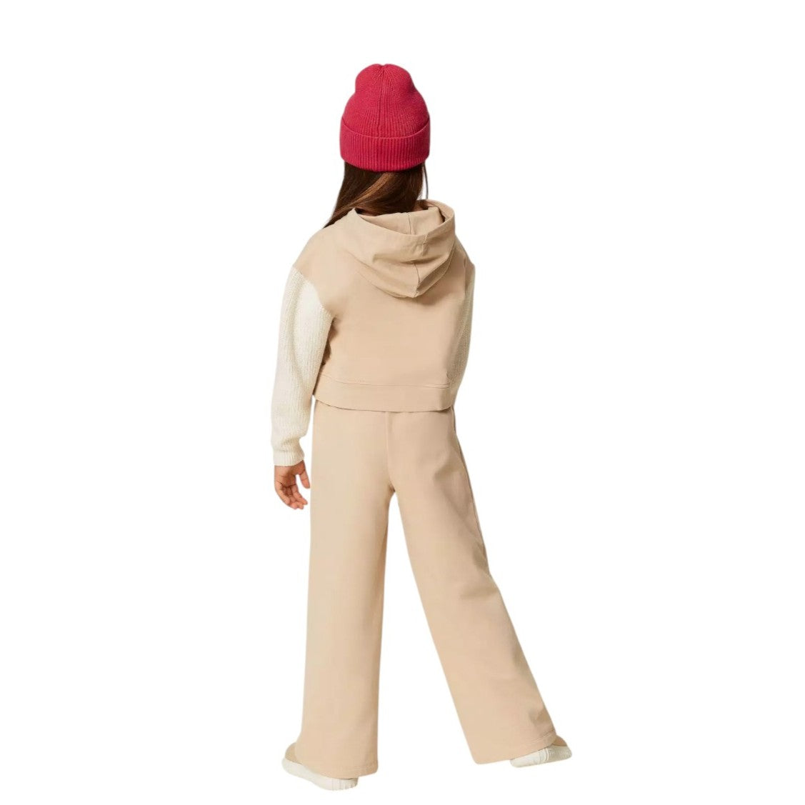 Questi pantaloni ampi da bambina, realizzati in felpa di cotone stretch, garantiscono comfort e libertà di movimento tutto il giorno. L'elastico in vita assicura una vestibilità perfetta, mentre il delicato logo ricamato a punto catenella aggiunge un tocco di stile originale. Ideali per giocare o rilassarsi con praticità e charme.