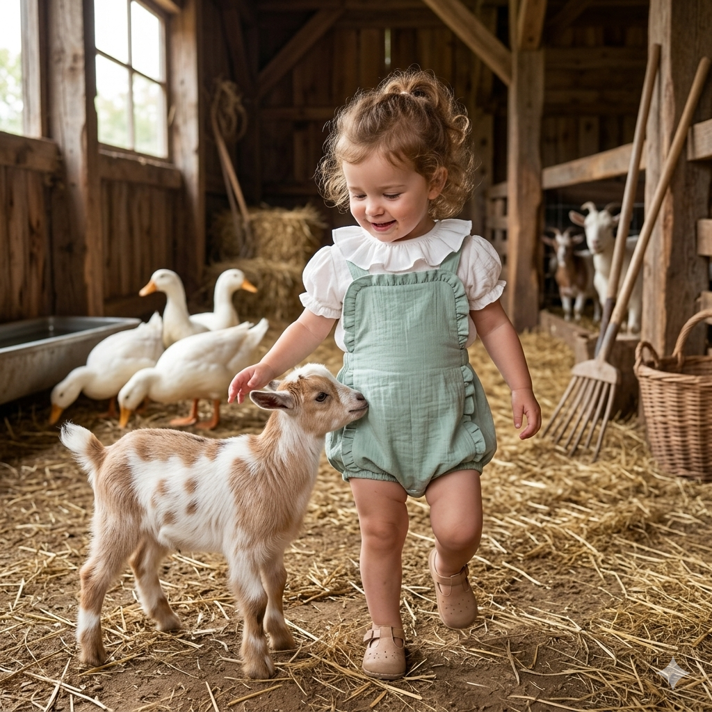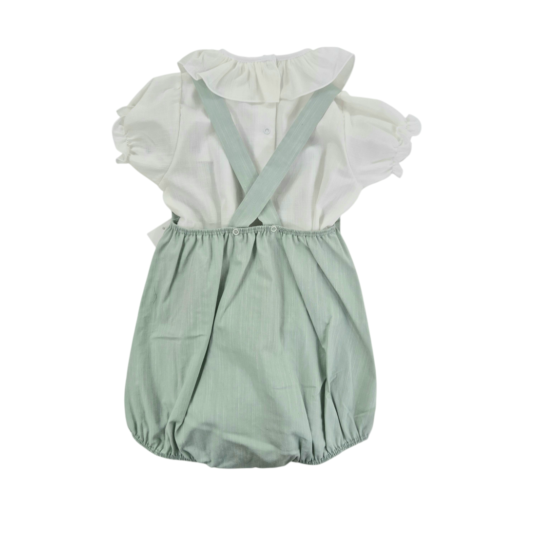 Completo elegante e versatile per le piccole principesse. La salopette in cotone puro presenta delicati volant perimetrali che aggiungono movimento e grazia, con elastico in vita sul retro per una vestibilità confortevole e pratica chiusura sul cavallo con clip. Il body coordinato in cotone morbido sfoggia un colletto tondo arricchito da rouches raffinate e maniche corte con elastico arricciato per un fit perfetto. Un abbinamento pensato per garantire comfort e stile, ideale per occasioni speciali o per il guardaroba quotidiano delle bambine che amano sentirsi eleganti.