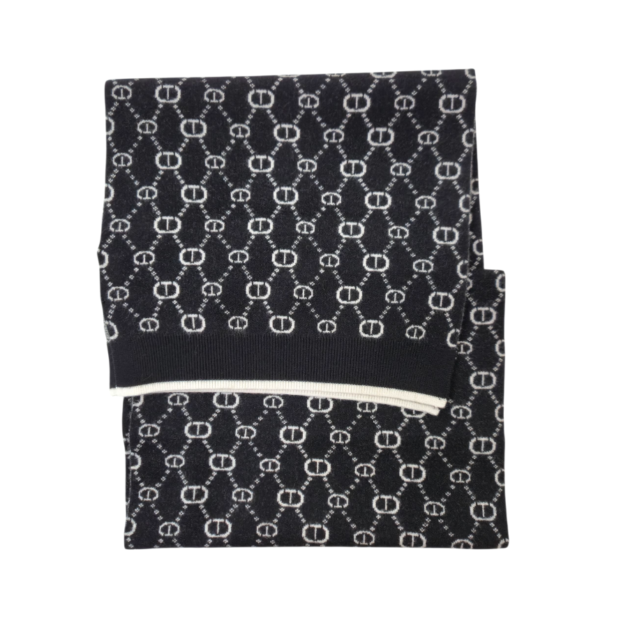 La sciarpa logata Twinset unisce eleganza e carattere con il suo design distintivo: l’ovale T bianco su fondo nero, impreziosito da profili bianchi, cattura immediatamente lo sguardo. Realizzata con una miscela raffinata di viscosa, poliestere e poliammide, assicura comfort e resistenza nel tempo. Un accessorio ideale per elevare ogni outfit con un tocco di sofisticata raffinatezza.