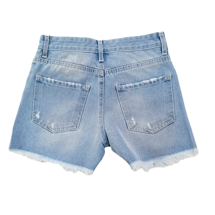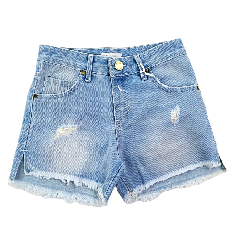 Questi shorts vintage da ragazza, realizzati in cotone denim leggero, offrono comfort e stile in ogni occasione. Il modello cinque tasche con strappi sulle gambe aggiunge un tocco di carattere, mentre la chiusura con bottone in metallo dorato e zip garantisce praticità e sicurezza. Perfetti per un look casual e alla moda, sono un must-have per chi ama distinguersi con semplicità.