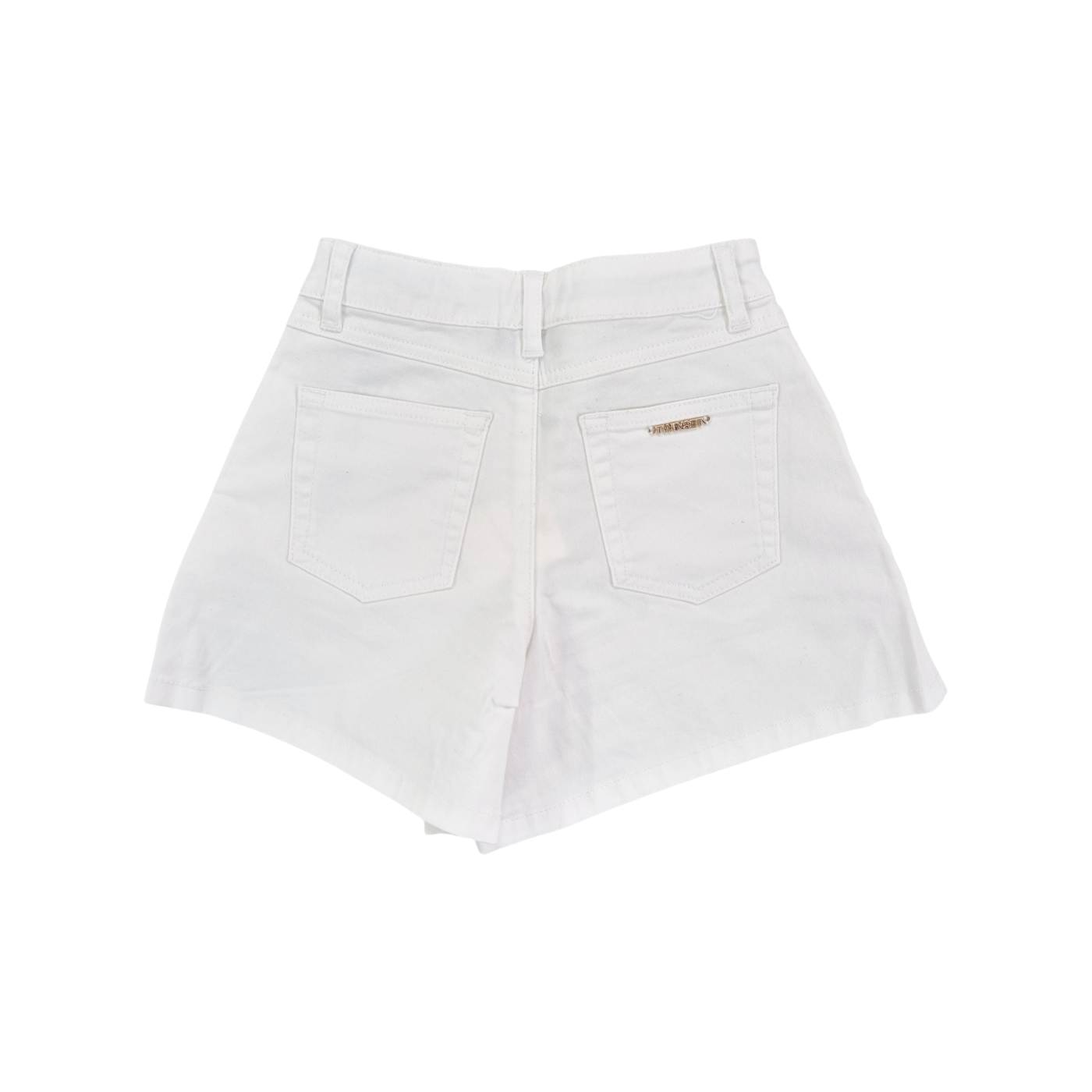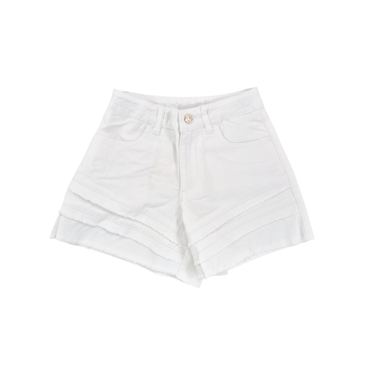 Shorts Girls con doppia piega e stile fresco! Realizzati in cotone denim leggero, perfetti per l'estate. Il modello classico a cinque tasche offre praticità, mentre la doppia piega e le sfrangiate sulla gamba regalano un tocco trendy e spensierato. Comodi, versatili e ideali per ogni avventura della tua piccola fashionista.