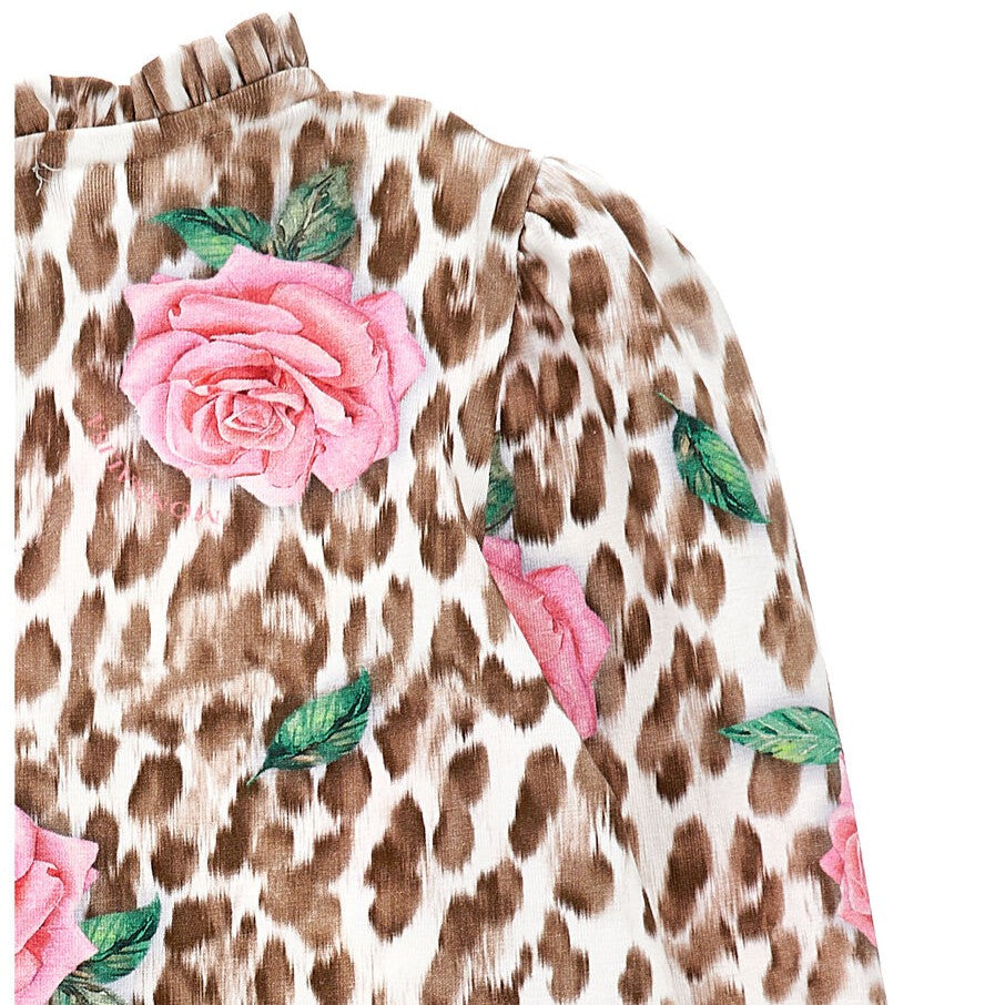 Questa t-shirt floreale per bambina unisce dolcezza e stile grazie al cotone stretch morbido e alla stampa floreale su fondo maculato. Il collo con galetta dona un tocco elegante, mentre le maniche lunghe assicurano comfort nelle giornate più fresche. Perfetta da abbinare a gonne e pantaloni, è la scelta ideale per vestire la tua piccola con raffinata praticità.