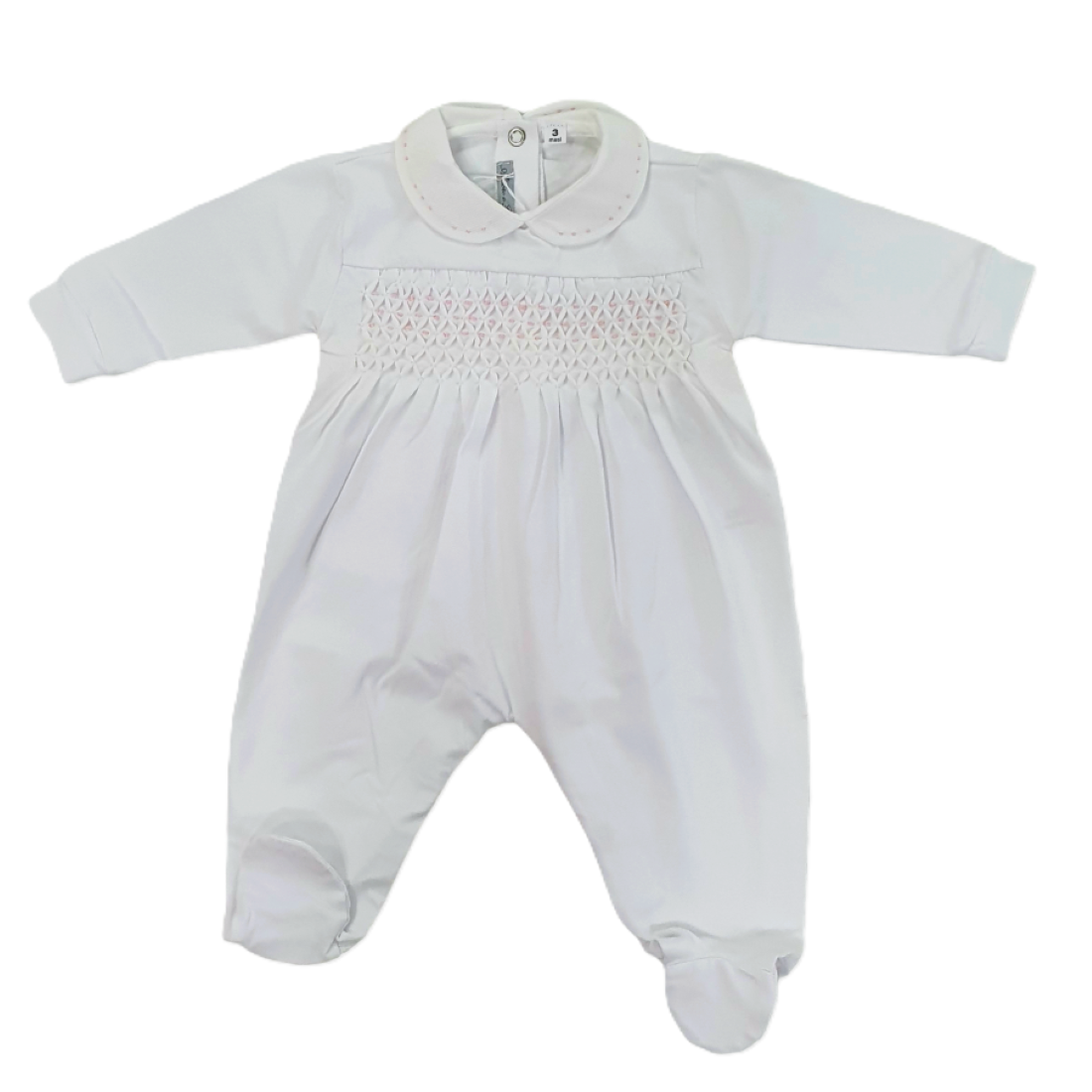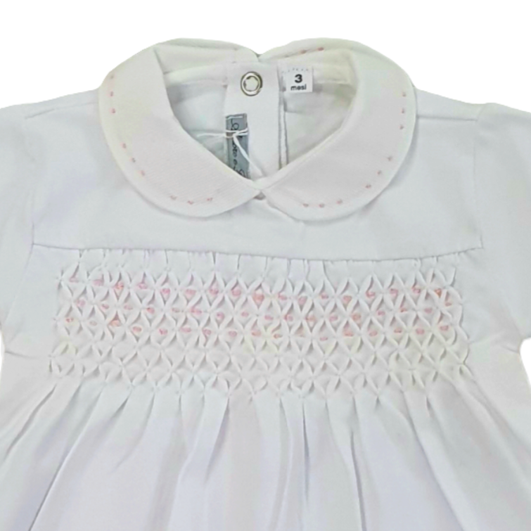 9. Tutina neonata ciniglia con punto smock RosaTutina neonata ciniglia con punto smock Rosa